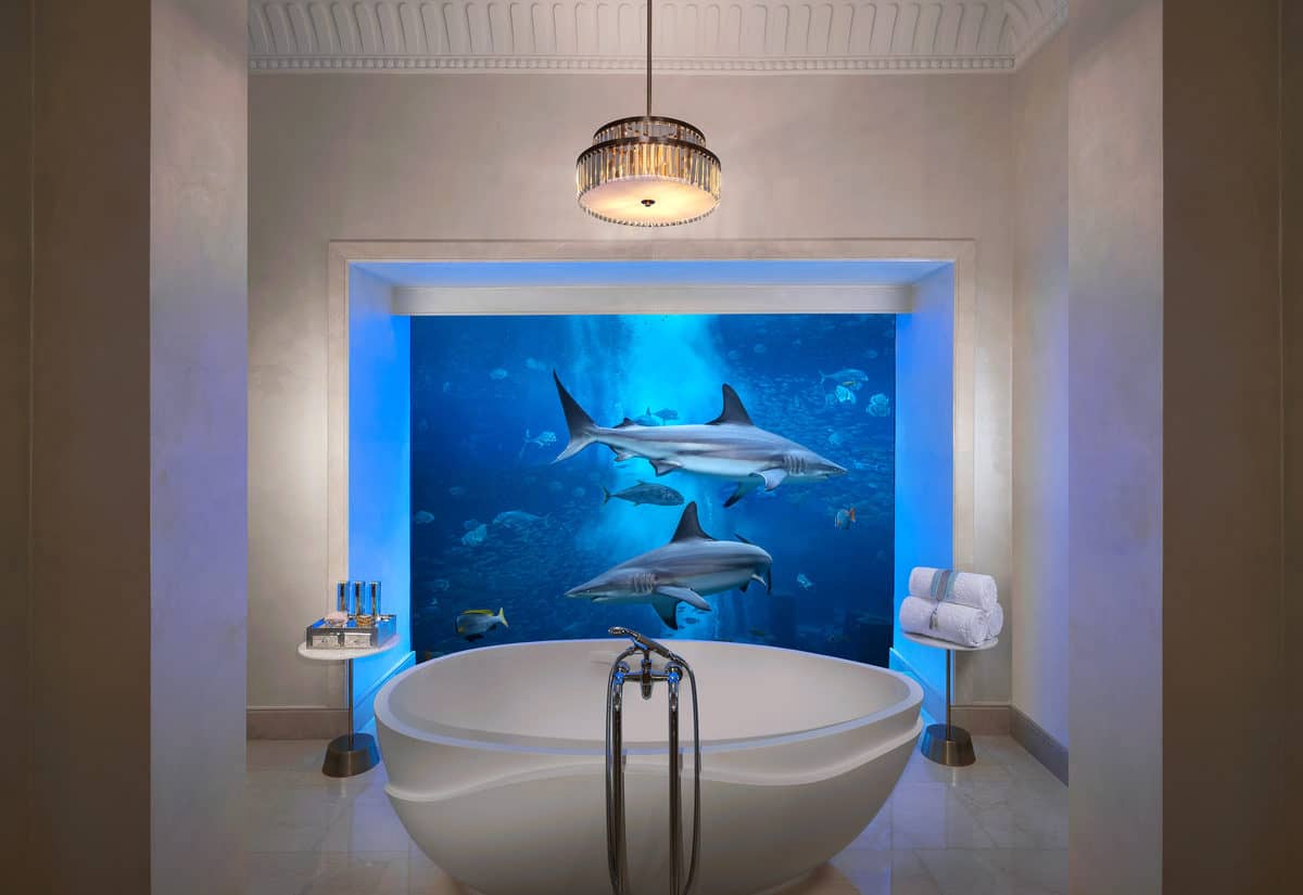 Oooh, you can see sharks drifting by from this UNDERWATER bathroom!